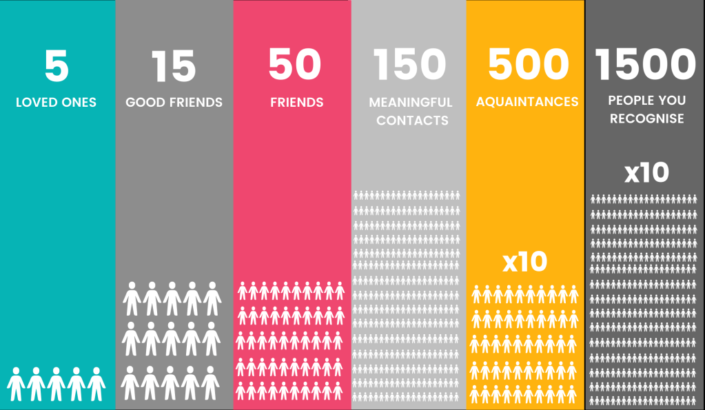 Dunbar Number: Anthropologist Robin Dunbar’s concept suggesting that humans can maintain stable social relationships with around 150 people.